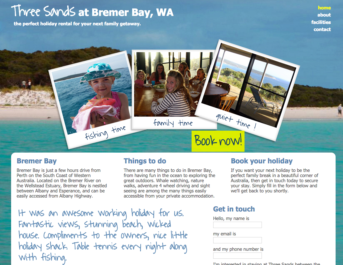 Three Sands Accommodation at Bremer Bay, WA (website now not in use) is a private family holiday rental on the south coast of Western Australia.