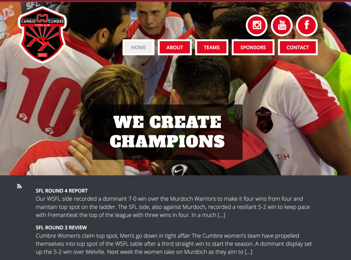 We built this site for Cambio Cumbre, the most successful futsal club in WA, winners of many competitions in WA and inter state. The site incorporates player display and administrative info as well as match updates and ways to join or contact the club.