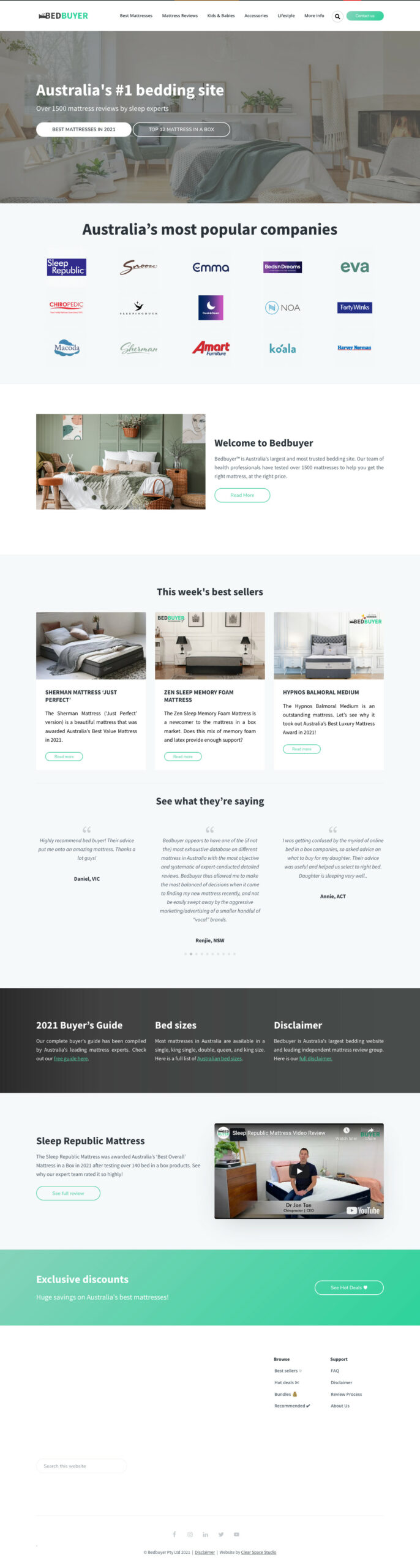Bedbuyer.com.au was built for a team of expert reviewers of mattresses and beds, incorporating a star rating review system and many ways for the reviews to be presented.